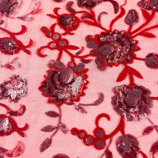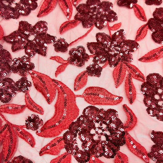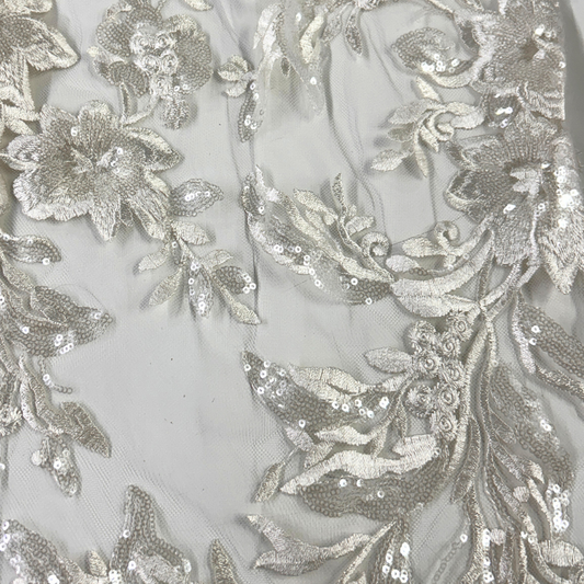 TUL BORDADO FLORES GRANDES CON LENTEJUELA