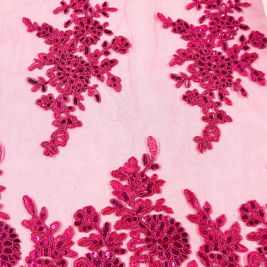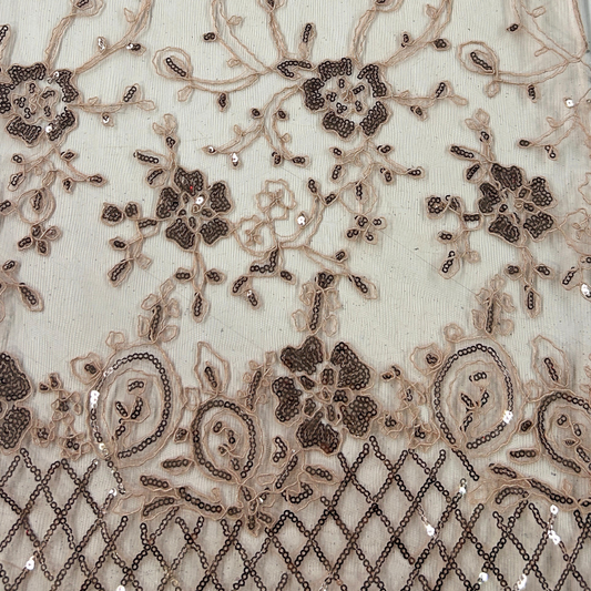 TUL BORDADO GUARDA CON FLORES Y LENTEJUELA
