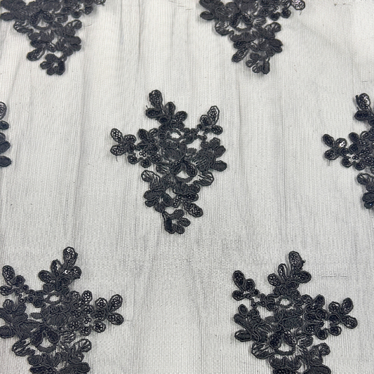 TUL BORDADO FLORES LENTEJUELA BICOLOR