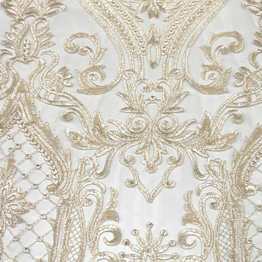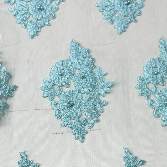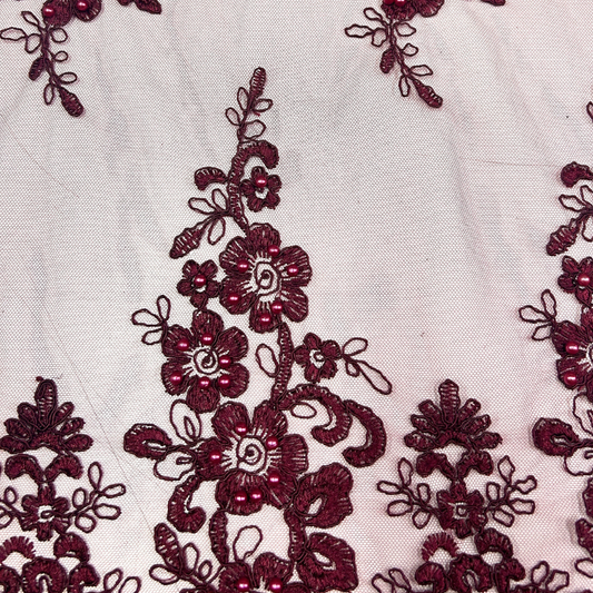 TUL BORDADO FLORES BICOLOR CON PERLAS