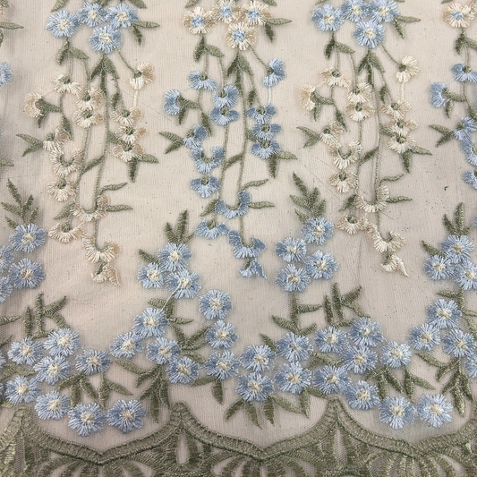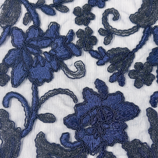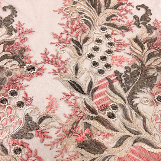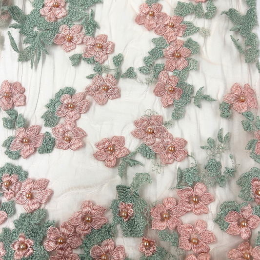 TUL BORDADO FLORES BICOLOR CON PERLAS
