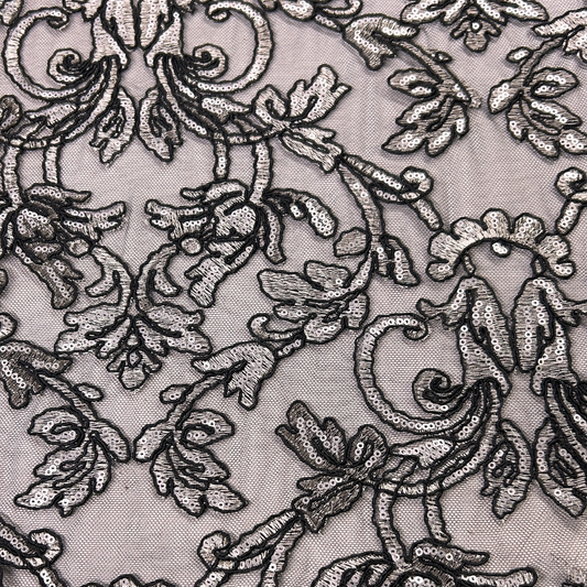 TUL BORDADO FLORES 3D CON LENTEJUELA