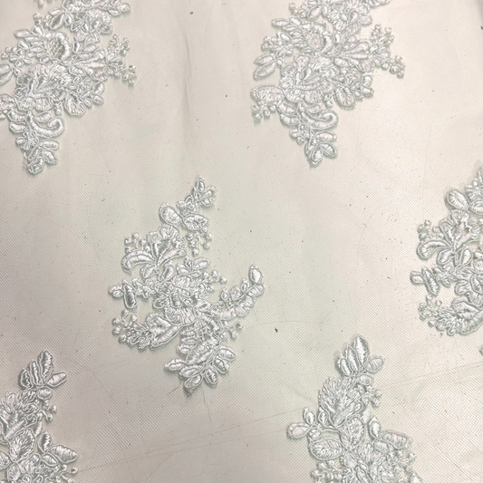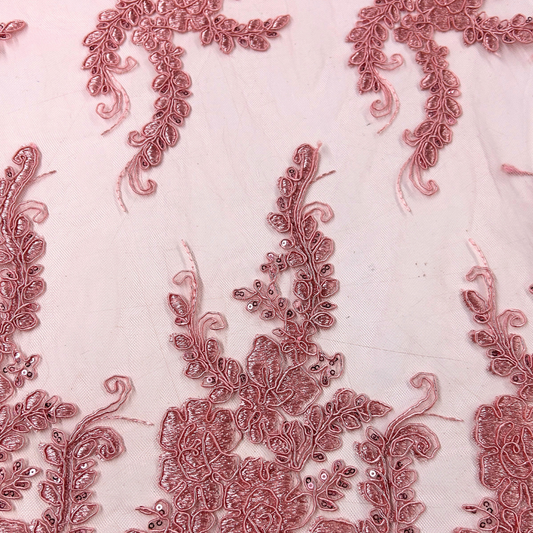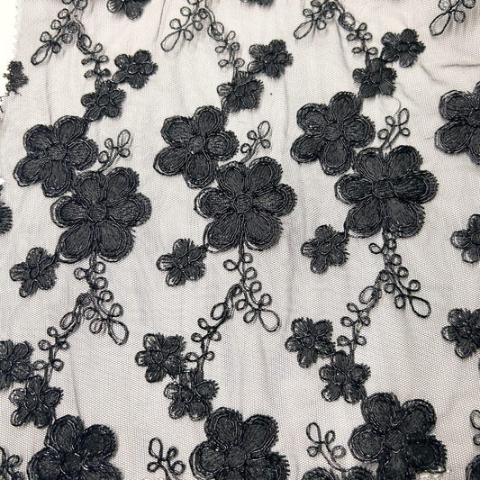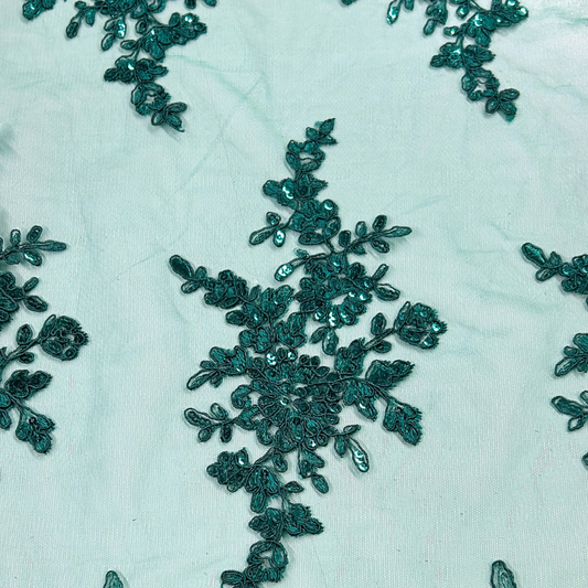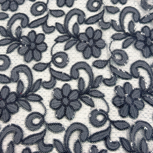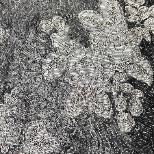 TUL BORDADO CON FLORES Y LENTEJUELA
