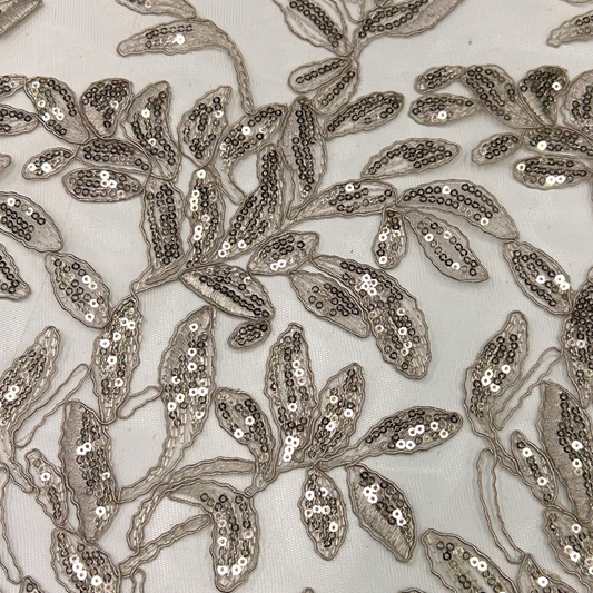 TUL BORDADO CON HOJAS 3D Y LENTEJUELA
