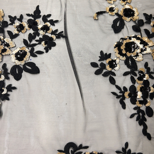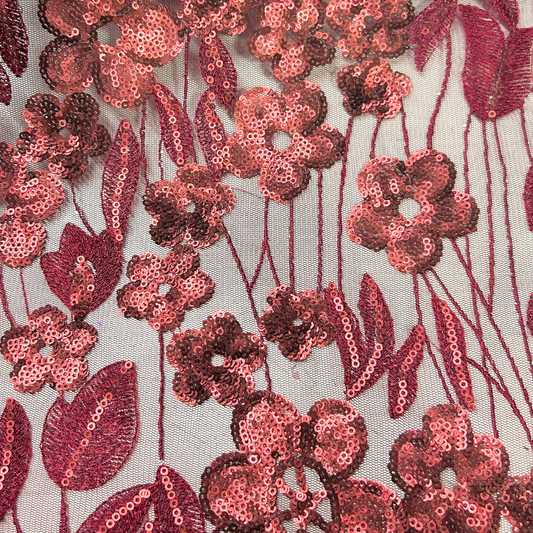 TUL BORDADO CON FLORES BICOLOR LENTEJUELA