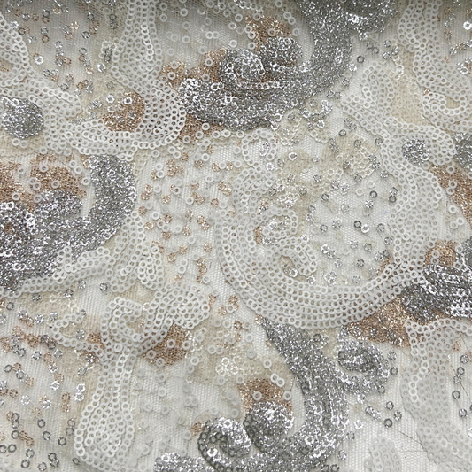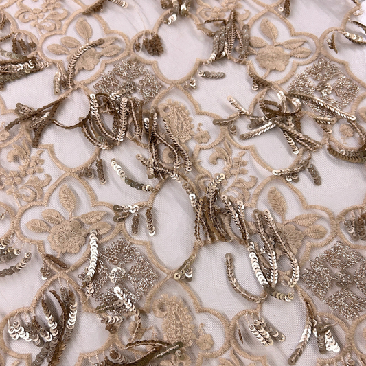 TUL BORDADO CON ARABESCOS Y LENTEJUELAS