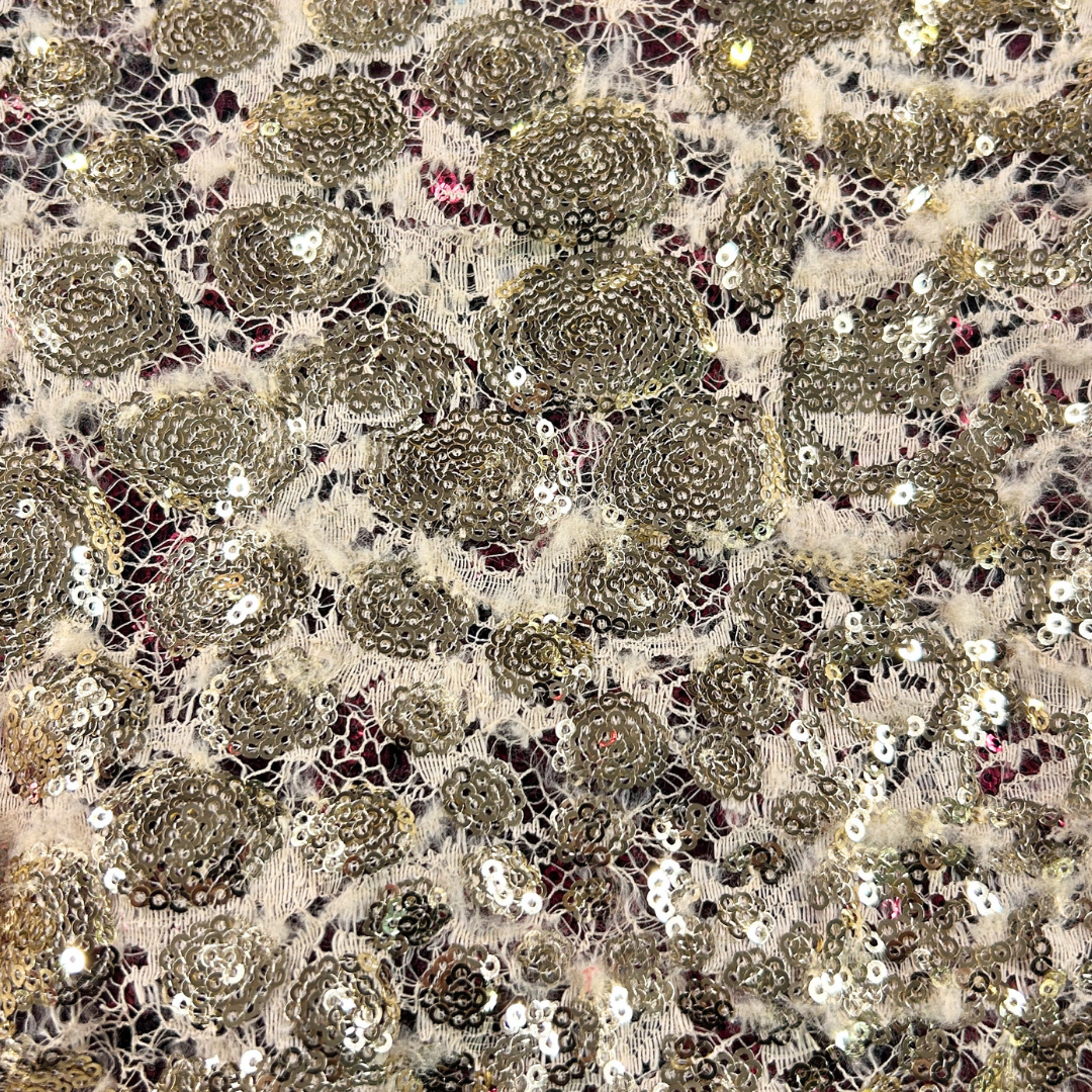 El encaje con lentejuela es una opción lujosa y deslumbrante que combina la delicadeza del encaje con el brillo vibrante de las lentejuelas. Este tejido crea un efecto visual cautivador, ideal para quienes buscan un toque de glamour y sofisticación en sus prendas.