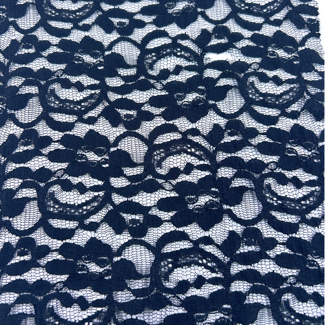 Facilidad de Confección: Aunque es un material más estructurado, el encaje rígido se maneja con facilidad durante la confección, permitiendo resultados de alta calidad y acabados profesionales.