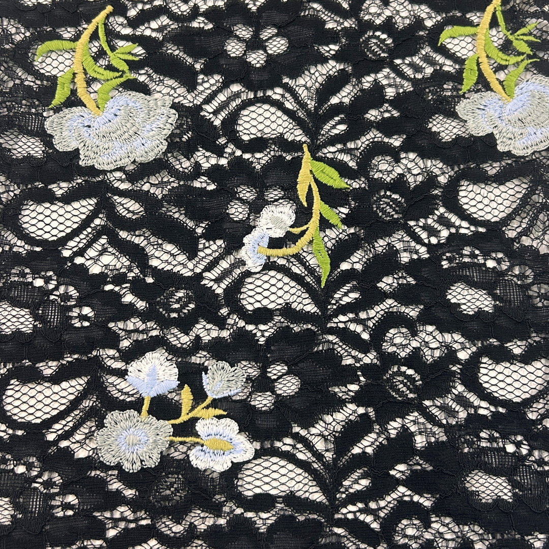 Facilidad de Confección: Aunque es un material más estructurado, el encaje rígido se maneja con facilidad durante la confección, permitiendo resultados de alta calidad y acabados profesionales.