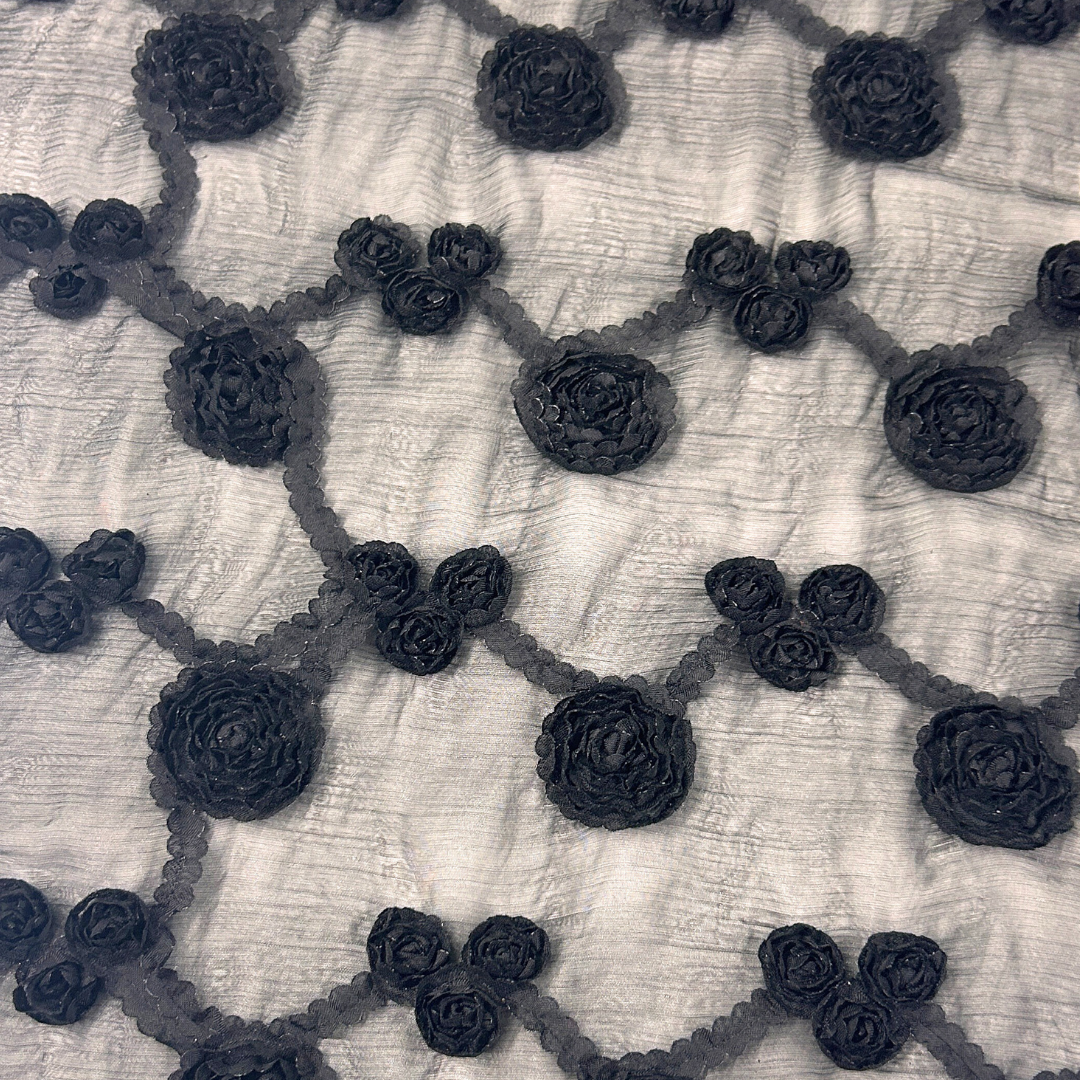 Ideal para confeccionar vestidos de noche, blusas finas y faldas elegantes, la Gasa Shun Shun Bordado ofrece una caída suave y una estructura ligera que realza el diseño con un sutil toque de glamour. Los bordados aportan un acabado detallado y decorativo, haciendo que cada pieza se convierta en una obra de arte visual.