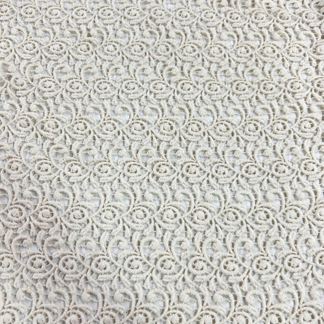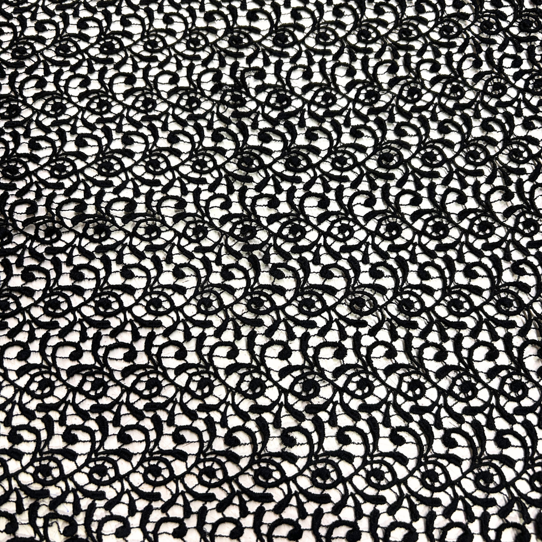 Ideal para confeccionar prendas de alta costura, vestidos de novia, y detalles decorativos en eventos especiales, el guipure aporta un toque de elegancia clásica y moderna. Su textura rica y sus patrones detallados añaden un aire de lujo y exclusividad a cualquier diseño.