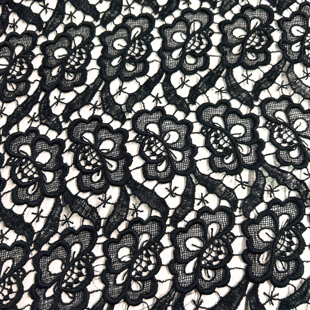 Ideal para confeccionar prendas de alta costura, vestidos de novia, y detalles decorativos en eventos especiales, el guipure aporta un toque de elegancia clásica y moderna. Su textura rica y sus patrones detallados añaden un aire de lujo y exclusividad a cualquier diseño.