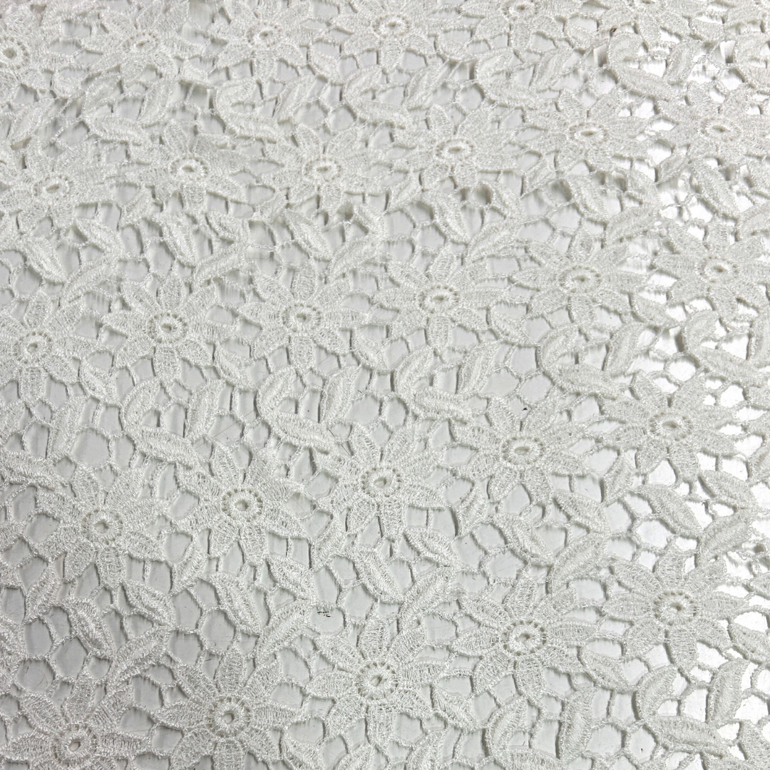 La tela guipure es sinónimo de sofisticación y distinción en el mundo de la moda. Con su intrincado diseño de encaje sin fondo, esta tela transforma cualquier prenda en una obra maestra de elegancia. Sus patrones ornamentales y detalles exquisitos aportan un aire de lujo, ideal para crear vestidos de gala, trajes de novia y blusas sofisticadas. La textura ligera y la estructura a base de hilos entrelazados ofrecen una apariencia etérea que capta miradas y realza cada diseño con un toque de refinamiento único.