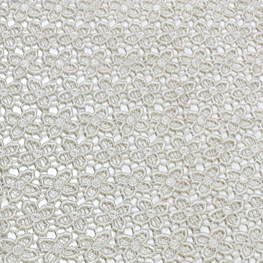 Ideal para confeccionar prendas de alta costura, vestidos de novia, y detalles decorativos en eventos especiales, el guipure aporta un toque de elegancia clásica y moderna. Su textura rica y sus patrones detallados añaden un aire de lujo y exclusividad a cualquier diseño.