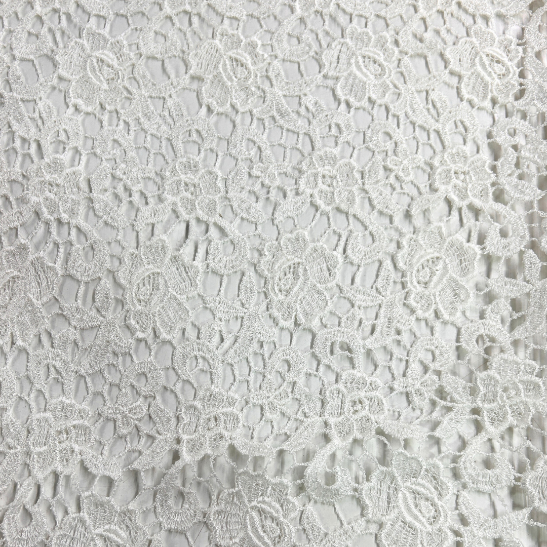 La tela guipure es sinónimo de sofisticación y distinción en el mundo de la moda. Con su intrincado diseño de encaje sin fondo, esta tela transforma cualquier prenda en una obra maestra de elegancia. Sus patrones ornamentales y detalles exquisitos aportan un aire de lujo, ideal para crear vestidos de gala, trajes de novia y blusas sofisticadas. La textura ligera y la estructura a base de hilos entrelazados ofrecen una apariencia etérea que capta miradas y realza cada diseño con un toque de refinamiento único.