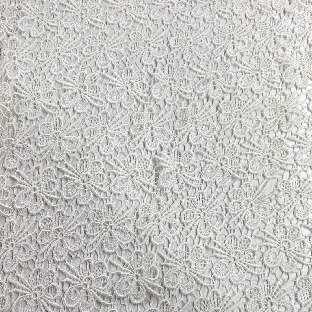 La tela guipure es sinónimo de sofisticación y distinción en el mundo de la moda. Con su intrincado diseño de encaje sin fondo, esta tela transforma cualquier prenda en una obra maestra de elegancia. Sus patrones ornamentales y detalles exquisitos aportan un aire de lujo, ideal para crear vestidos de gala, trajes de novia y blusas sofisticadas. La textura ligera y la estructura a base de hilos entrelazados ofrecen una apariencia etérea que capta miradas y realza cada diseño con un toque de refinamiento único.