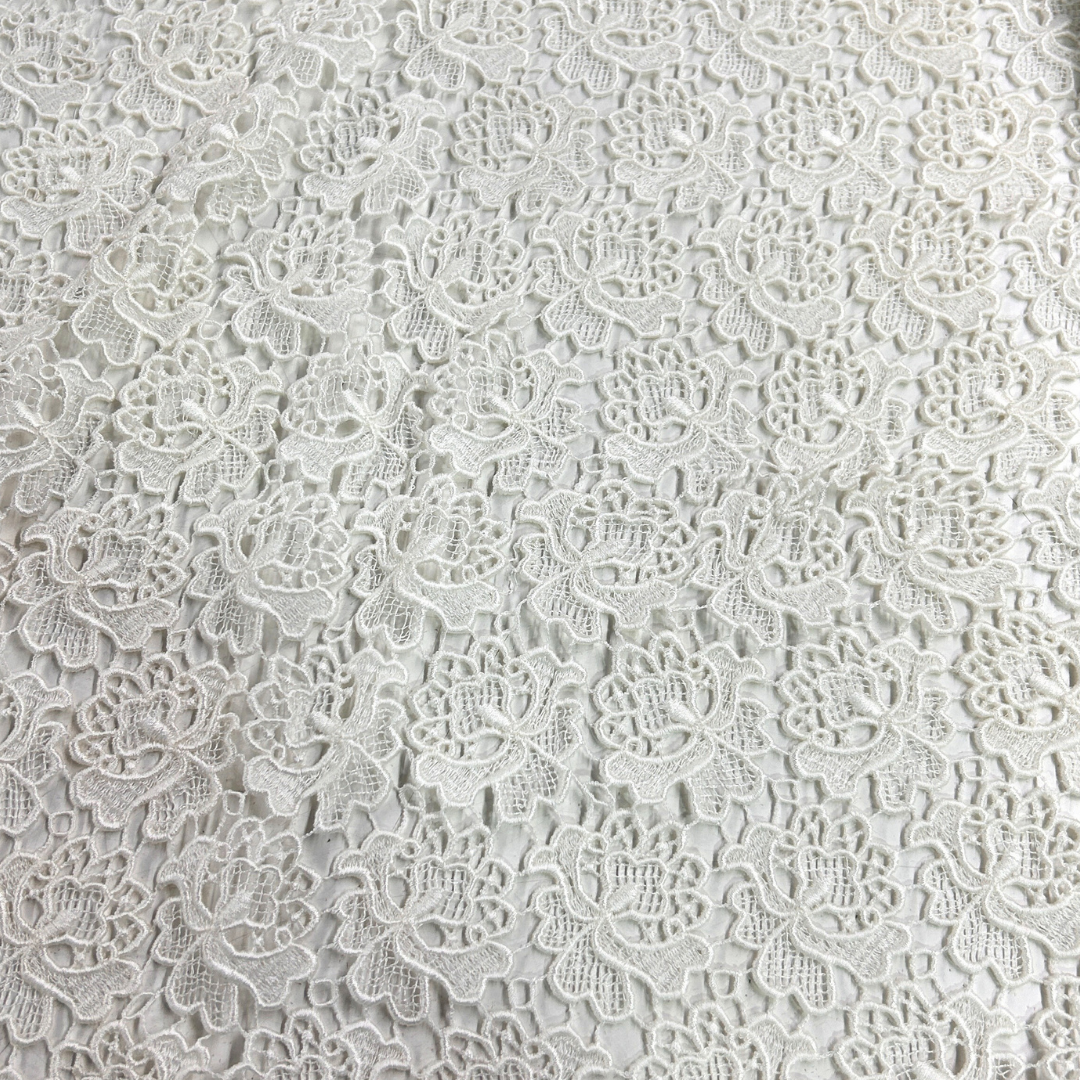 La tela guipure es sinónimo de sofisticación y distinción en el mundo de la moda. Con su intrincado diseño de encaje sin fondo, esta tela transforma cualquier prenda en una obra maestra de elegancia. Sus patrones ornamentales y detalles exquisitos aportan un aire de lujo, ideal para crear vestidos de gala, trajes de novia y blusas sofisticadas. La textura ligera y la estructura a base de hilos entrelazados ofrecen una apariencia etérea que capta miradas y realza cada diseño con un toque de refinamiento único.