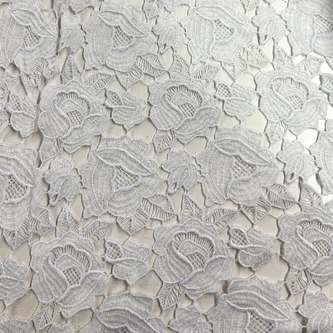 La tela guipure es sinónimo de sofisticación y distinción en el mundo de la moda. Con su intrincado diseño de encaje sin fondo, esta tela transforma cualquier prenda en una obra maestra de elegancia. Sus patrones ornamentales y detalles exquisitos aportan un aire de lujo, ideal para crear vestidos de gala, trajes de novia y blusas sofisticadas. La textura ligera y la estructura a base de hilos entrelazados ofrecen una apariencia etérea que capta miradas y realza cada diseño con un toque de refinamiento único.