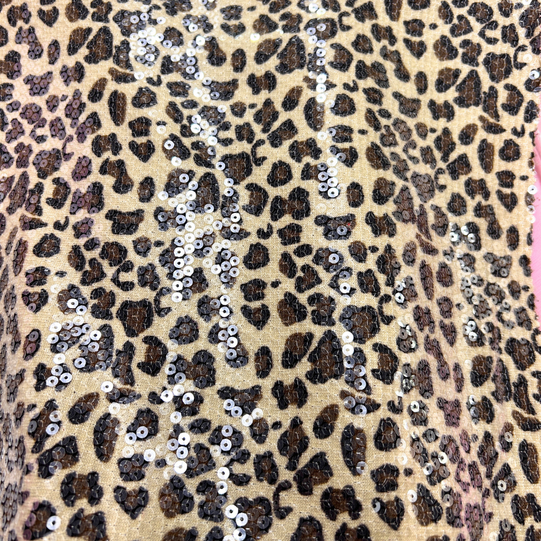Perfecto para vestidos de fiesta, blusas, y accesorios que buscan destacarse, el lentejuela animal print eleva cualquier diseño con su combinación única de brillo y estilo audaz. Las lentejuelas realzan el patrón animal print, creando un efecto visual dinámico y atractivo que es ideal para quienes desean hacer una declaración de moda audaz y sofisticada. Con el lentejuela animal print, cada prenda no solo brilla, sino que también captura la esencia de un estilo atrevido y distintivo.