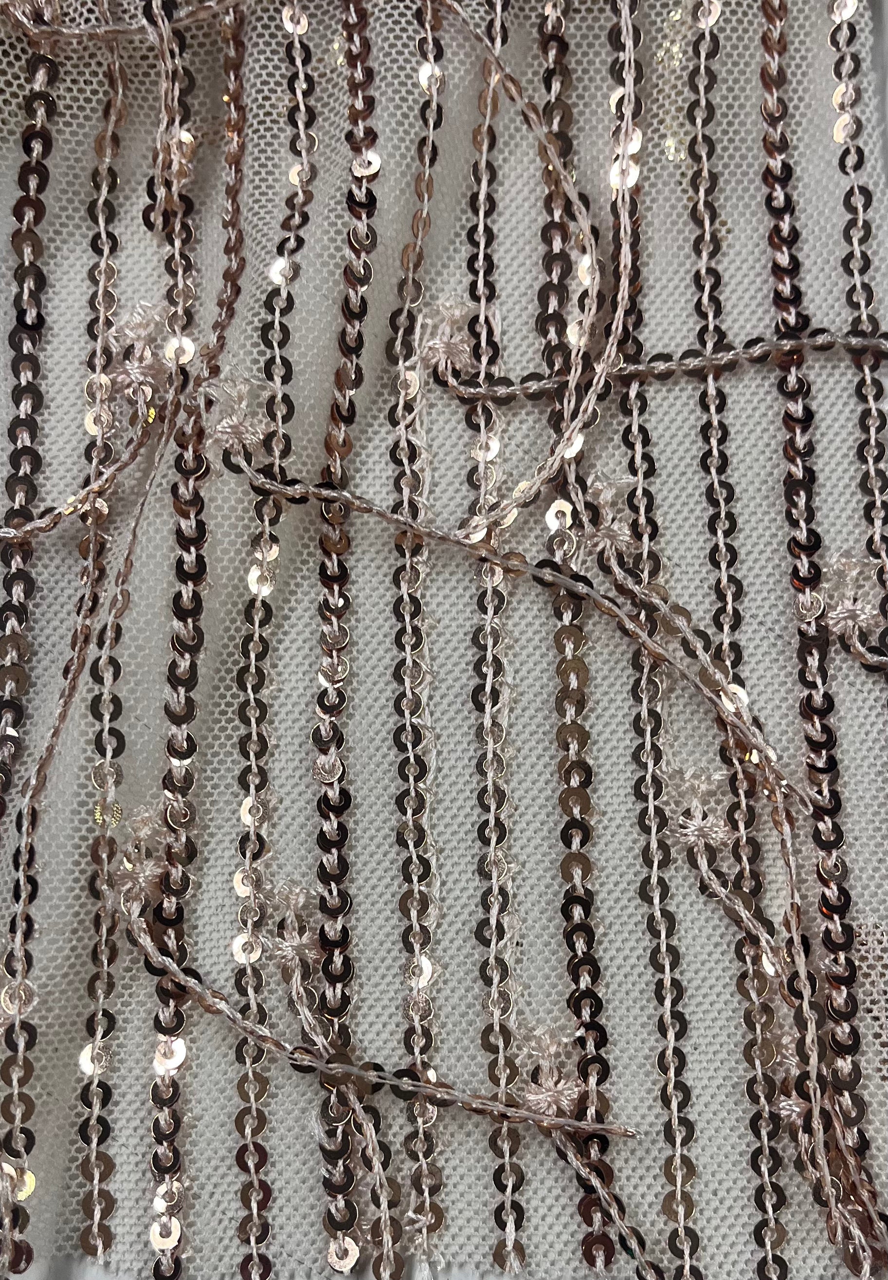 Deslumbra con nuestra tela de lentejuela con flecos, la elección perfecta para agregar un toque de sofisticación y brillo a tus creaciones. Las lentejuelas reflejan la luz con un resplandor cautivador, mientras que los fleco añaden un movimiento elegante y juguetón a cada paso. Ideal para vestidos de fiesta, trajes llamativos y cualquier diseño que quiera captar todas las miradas.