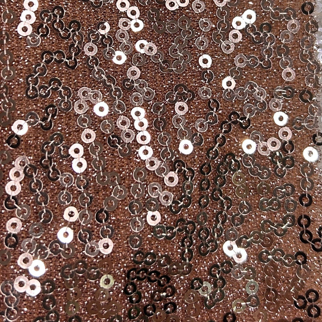 Perfecta para vestidos de fiesta, trajes de gala y cualquier creación que requiera un toque de sofisticación, esta tela ofrece un ajuste impecable y una caída elegante. Deja que el lujo y el confort se unan en tu próxima creación y sé el centro de todas las miradas con la extraordinaria Lentejuela Paillette sobre base Jersey. ¡Haz que cada momento sea memorable con un estilo que brilla con intensidad y sofisticación!