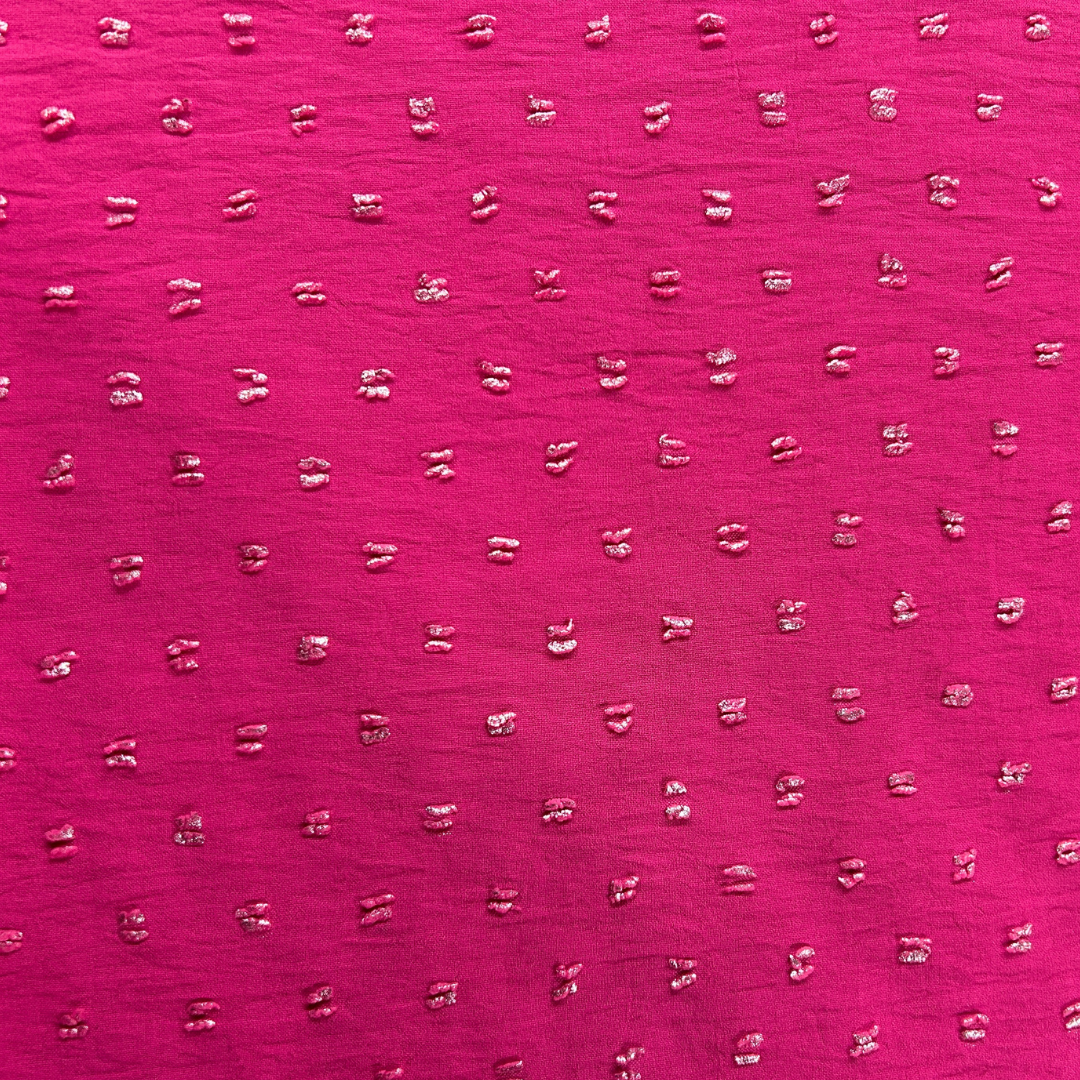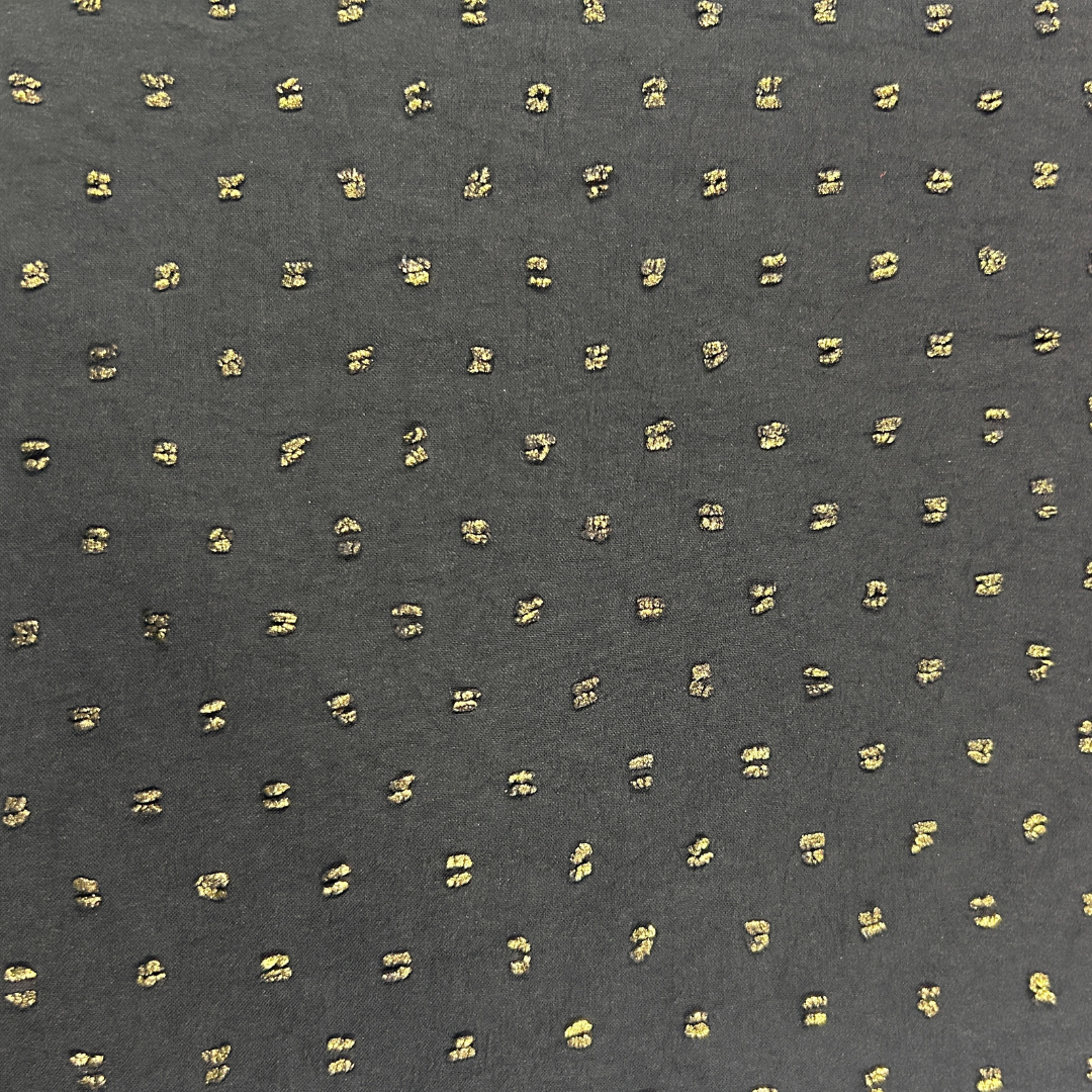 Descubre el esplendor de nuestro Poplin Plumetí con Lurex, un tejido que une la ligereza del poplin con el brillo sutil del lurex para un acabado verdaderamente deslumbrante. Este material elegante presenta un delicado patrón de plumetí adornado con hilos metálicos que aportan un toque de glamour sin perder la sofisticación. Ideal para blusas, vestidos y faldas que buscan destacar en cualquier ocasión, el Poplin Plumetí con Lurex transforma cada diseño en una pieza de impacto y estilo.