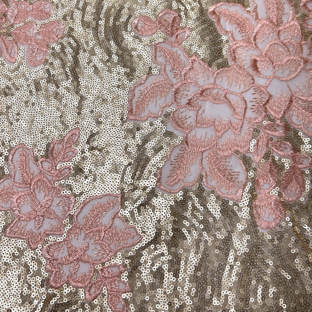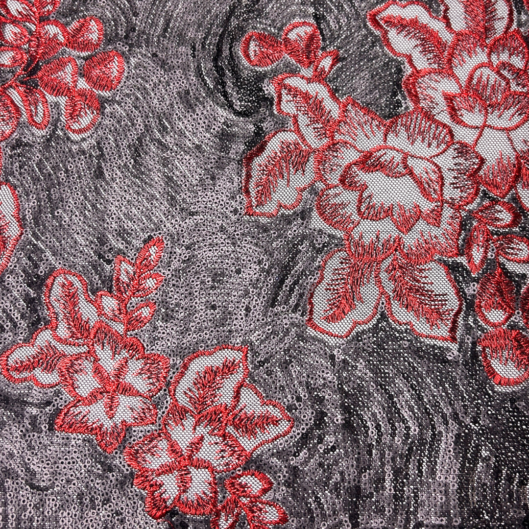 TUL BORDADO CON FLORES Y LENTEJUELA