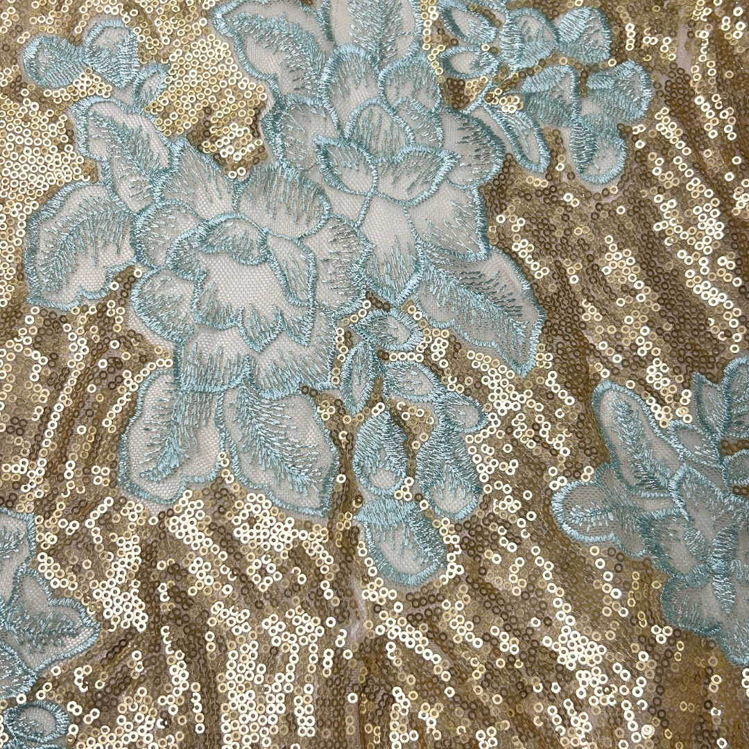 Enamórate del Tul Bordado con Flores y Lentejuelas, un tejido que fusiona la delicadeza del tul con el esplendor de los bordados florales y el glamour de las lentejuelas. Este tejido encantador transforma cada diseño en una declaración de elegancia y sofisticación, ideal para vestidos de gala, blusas y accesorios que buscan destacar con un toque de lujo.
