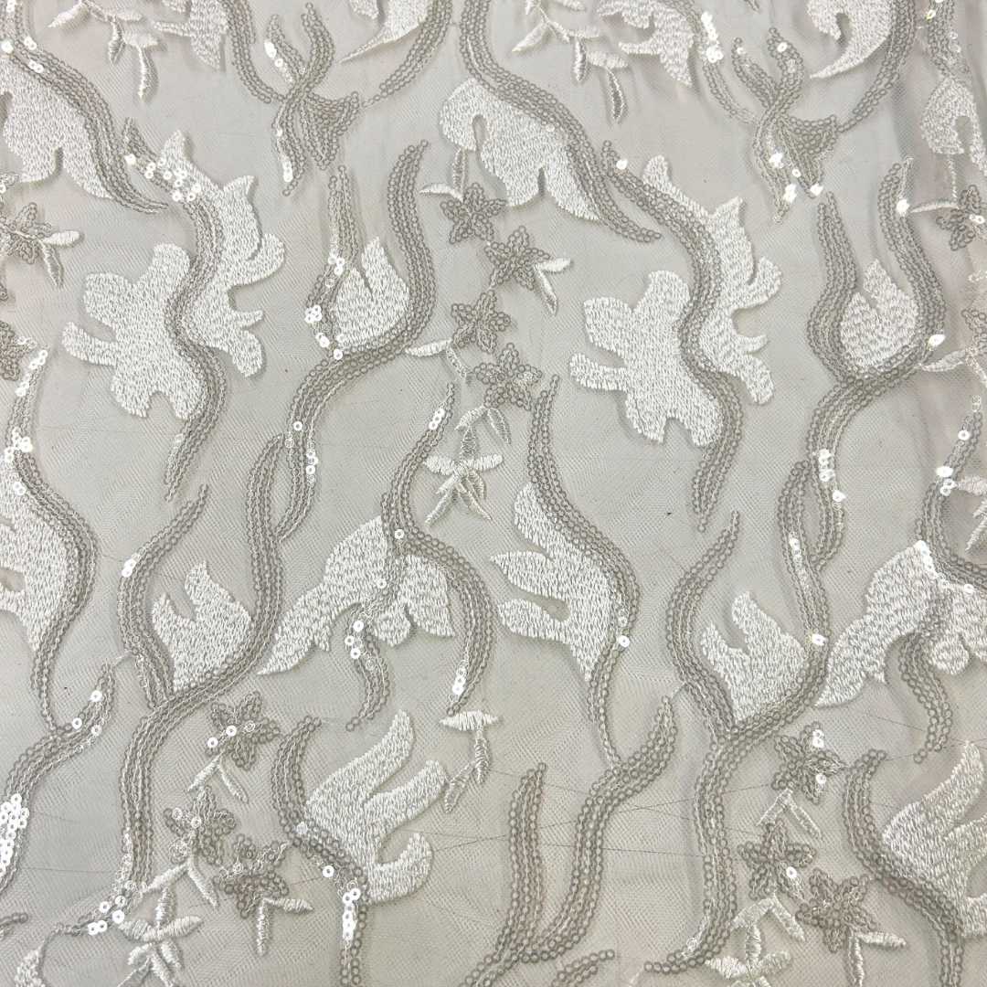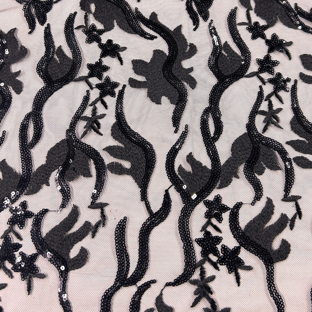 Transforma tus diseños con el Tul Bordado con Hojas 3D y Lentejuelas, un tejido que combina la ligereza del tul con un bordado tridimensional de hojas y el resplandor sofisticado de las lentejuelas. Ideal para vestidos de gala, trajes de ceremonia y accesorios llamativos, este tejido aporta un efecto visual fascinante y un toque de glamour refinado.