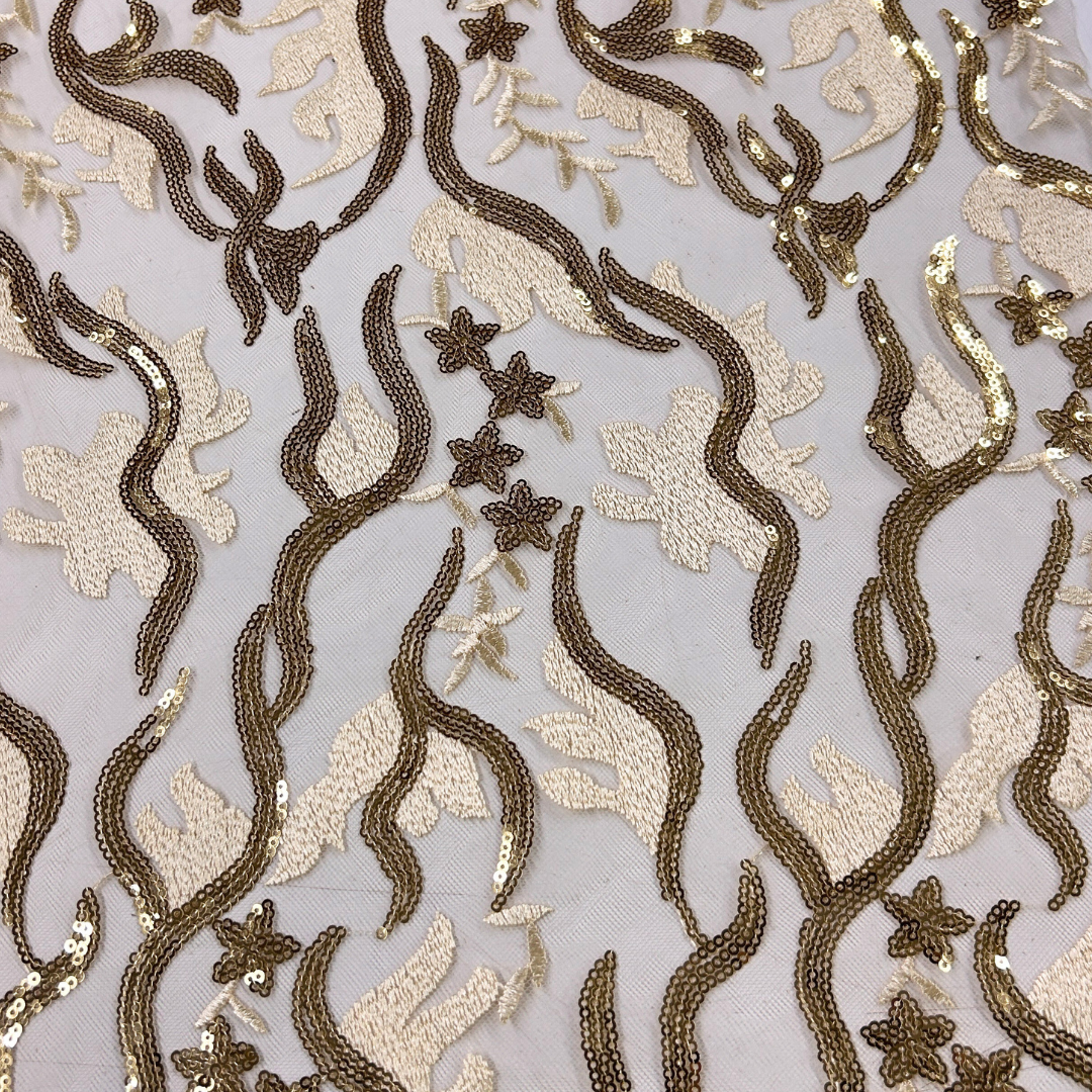 Tul Bordado con Hojas 3D y Lentejuelas: Elegancia y Dimensión en Cada Puntada