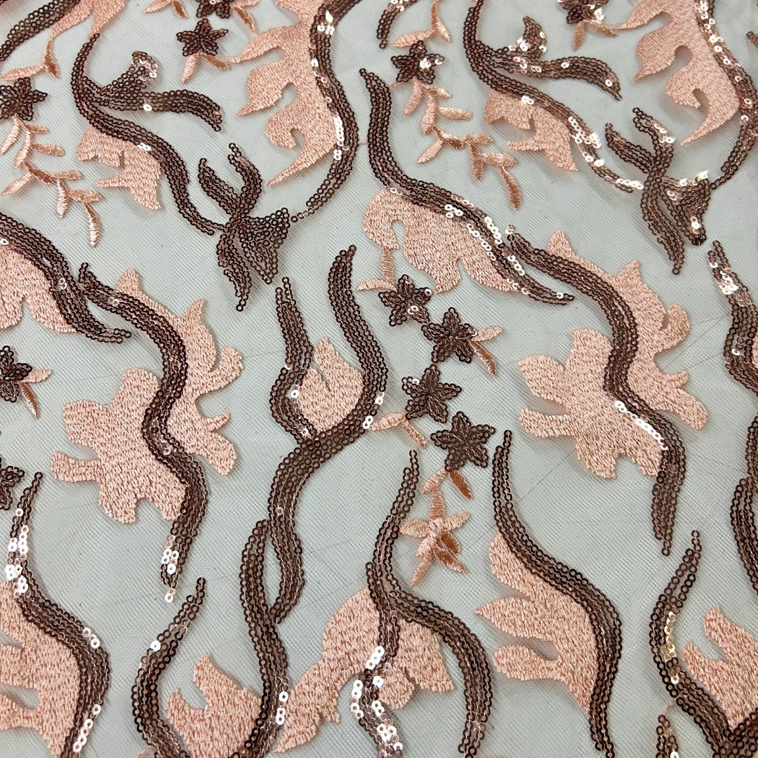 TUL BORDADO CON HOJAS 3D Y LENTEJUELA