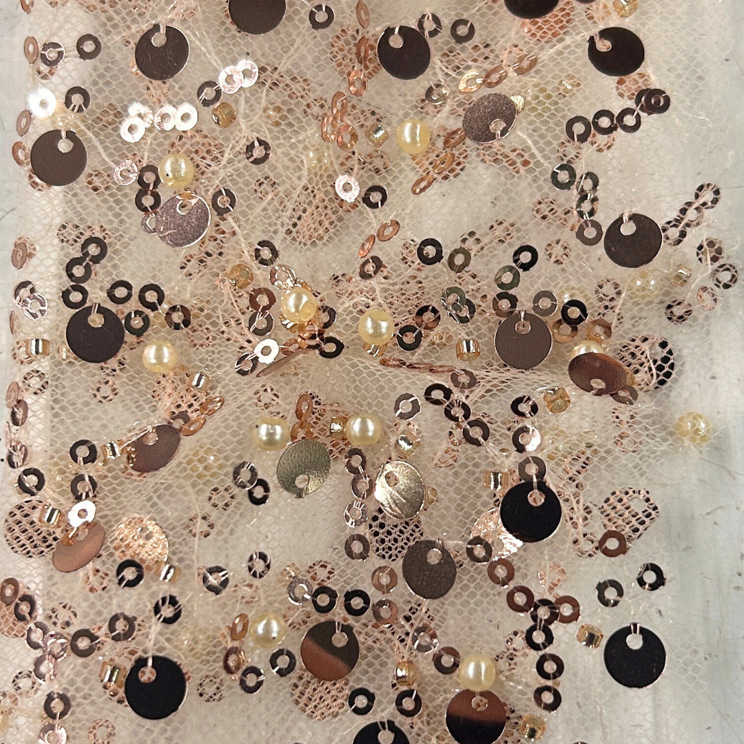 Descubre la opulencia del Tul Bordado con Lentejuelas y Piedras, un tejido que une la delicadeza del tul con el resplandor sofisticado de lentejuelas y el deslumbrante brillo de piedras. Perfecto para vestidos de gala, trajes de ceremonia y accesorios lujosos, este tejido transforma cada diseño en una pieza de lujo y elegancia.