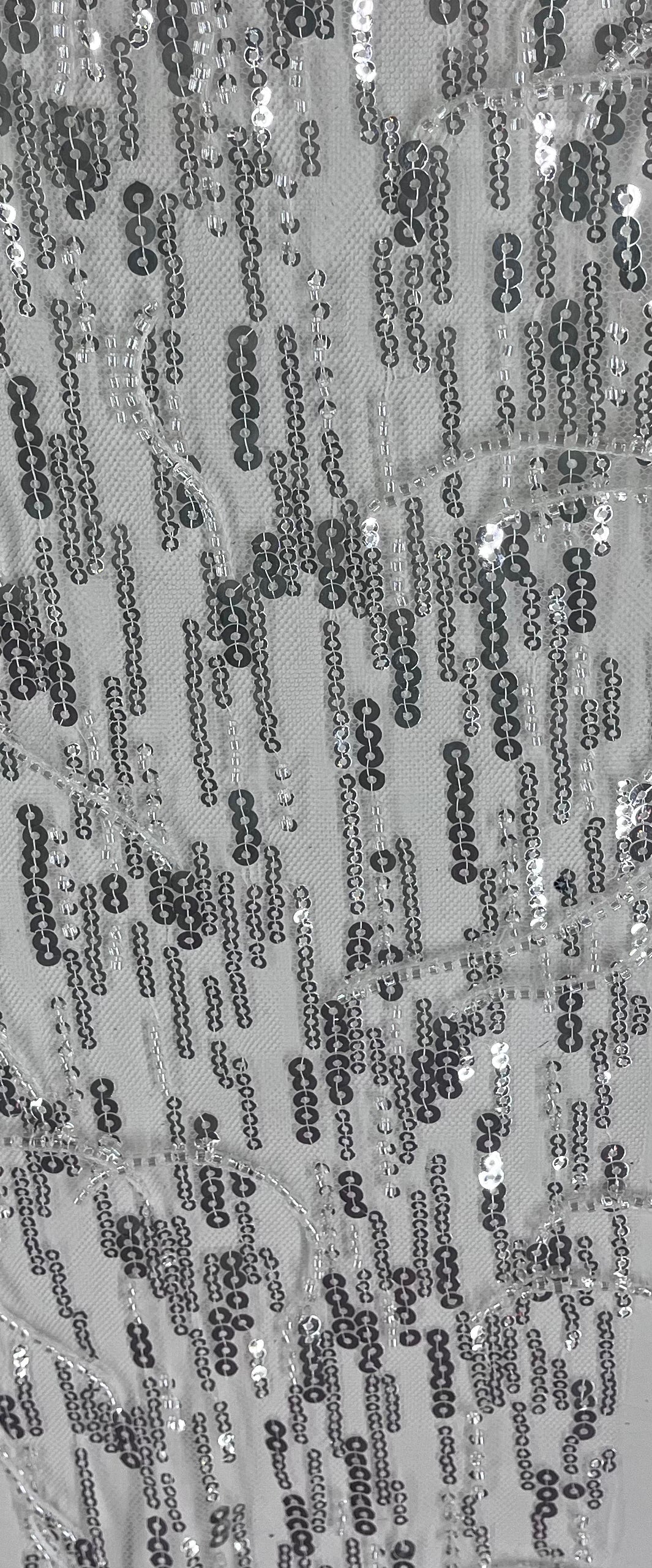 Ideal para vestidos de fiesta, trajes llamativos y cualquier diseño que quiera captar todas. las miradas. El Tul bordado con Lentejuelas y Flecos hace que tus creaciones se conviertan en piezas de alto impacto, gracias a su brillo impactante y su movimiento elegante.
