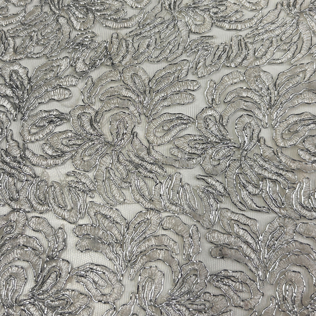 Transforma tus diseños con el Tul Bordado con Dibujo 3D, un tejido que combina la ligereza etérea del tul con un bordado tridimensional de dibujos detallados. Perfecto para vestidos de gala, blusas sofisticadas y accesorios exclusivos, este tejido ofrece un acabado artístico y una profundidad visual única.