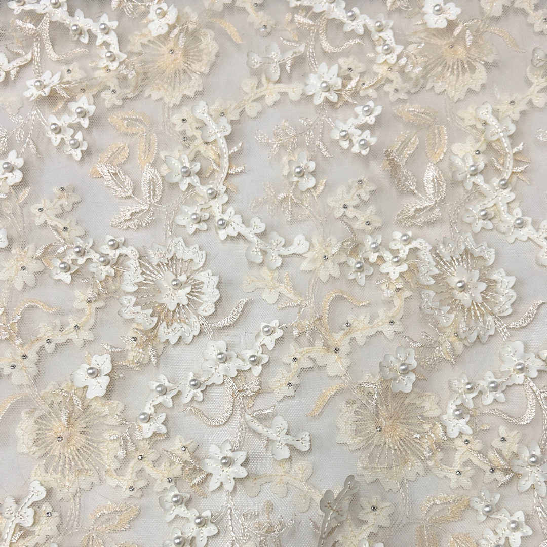 Transforma tus creaciones con el Tul Bordado con Flores y Lentejuelas, un tejido que combina la ligereza etérea del tul con el encanto de bordados florales detallados y el resplandor sutil de lentejuelas. Ideal para vestidos de gala, blusas sofisticadas y accesorios elegantes, este tejido aporta un toque de glamour y sofisticación a cada diseño.