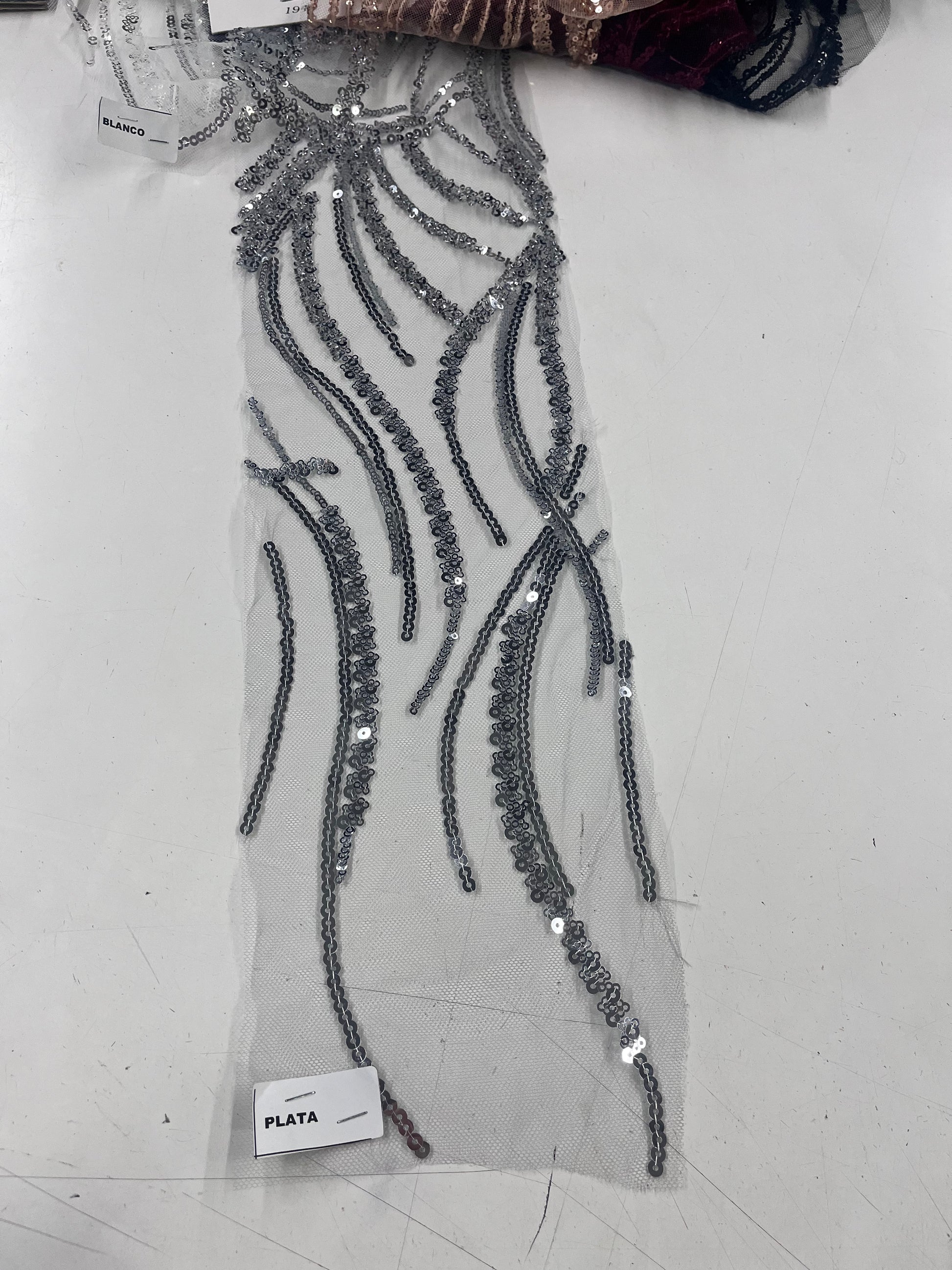 Tul Bordado Geométrico con Lentejuelas: Diseño moderno, brillo que destaca.