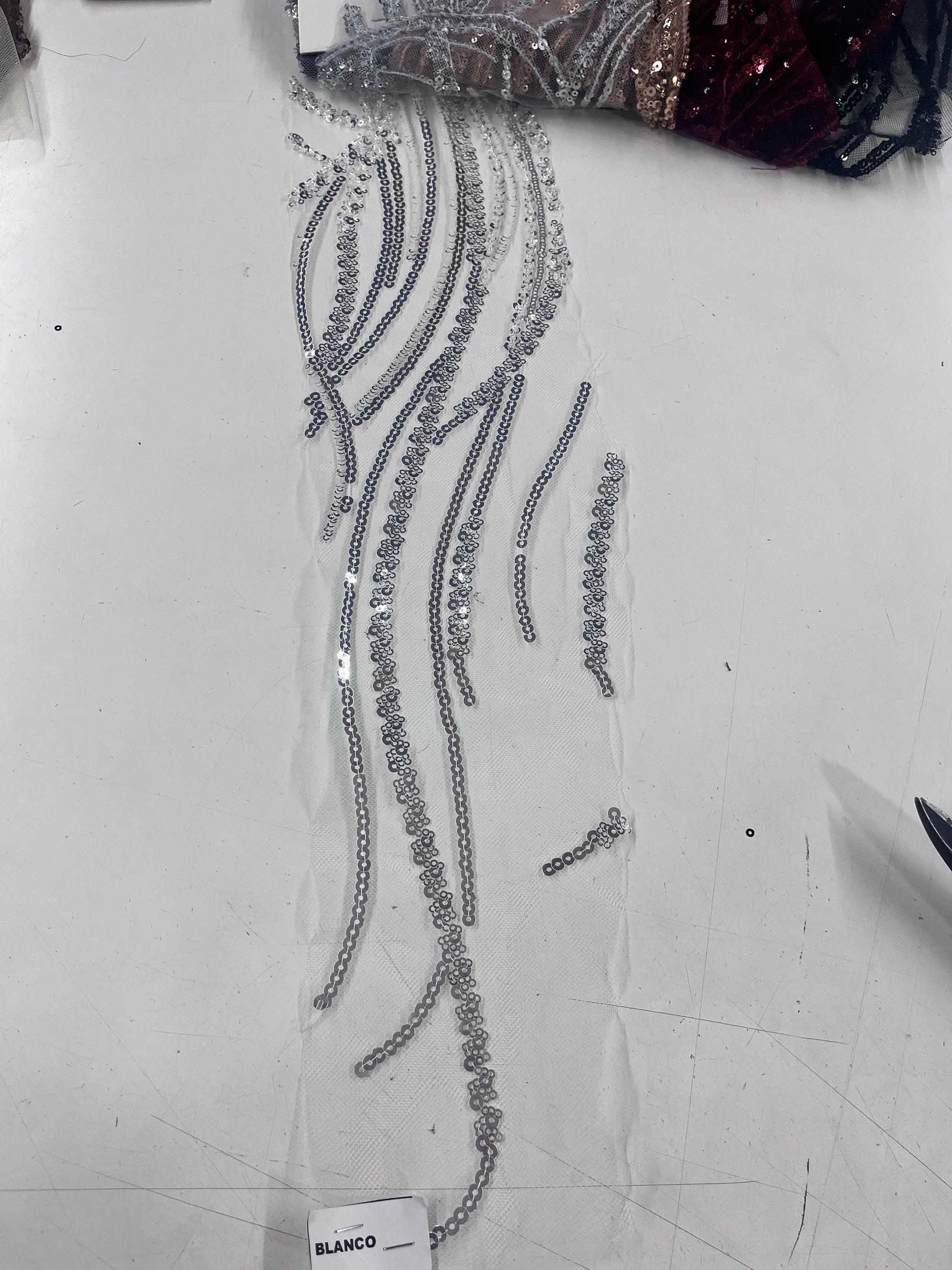 Este tul bordado es la elección ideal para quienes buscan una tela impactante y sofisticada. Su diseño geométrico bordado con finas lentejuelas aporta textura, luz y un toque contemporáneo a cualquier creación.Perfecto para vestidos de gala, cuerpos estructurados o detalles en capas superpuestas, este tul ofrece una propuesta visual impactante sin sacrificar la delicadeza característica de los tules bordados.